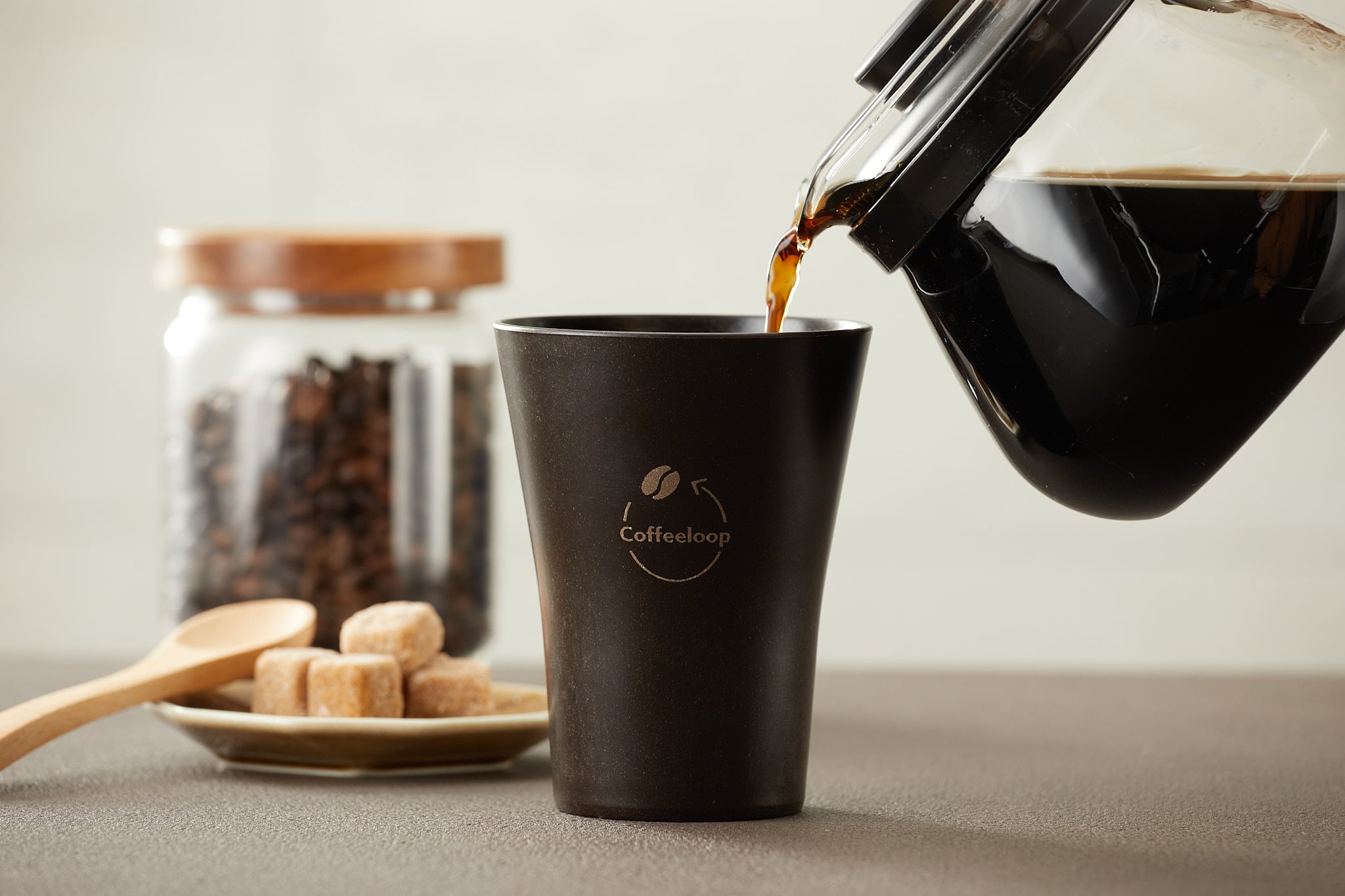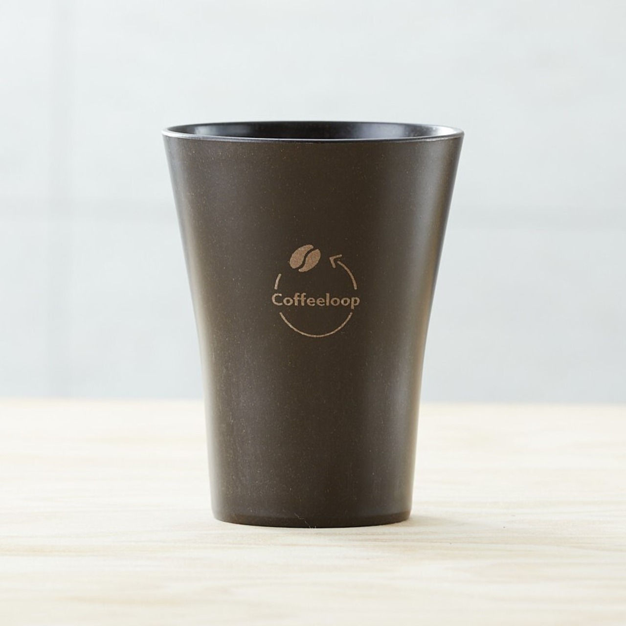 「Coffeeloopカップ」はコーヒー抽出後のコーヒーかすと間伐材の木粉、リサイクルポリプロピレンを使って製造しました。