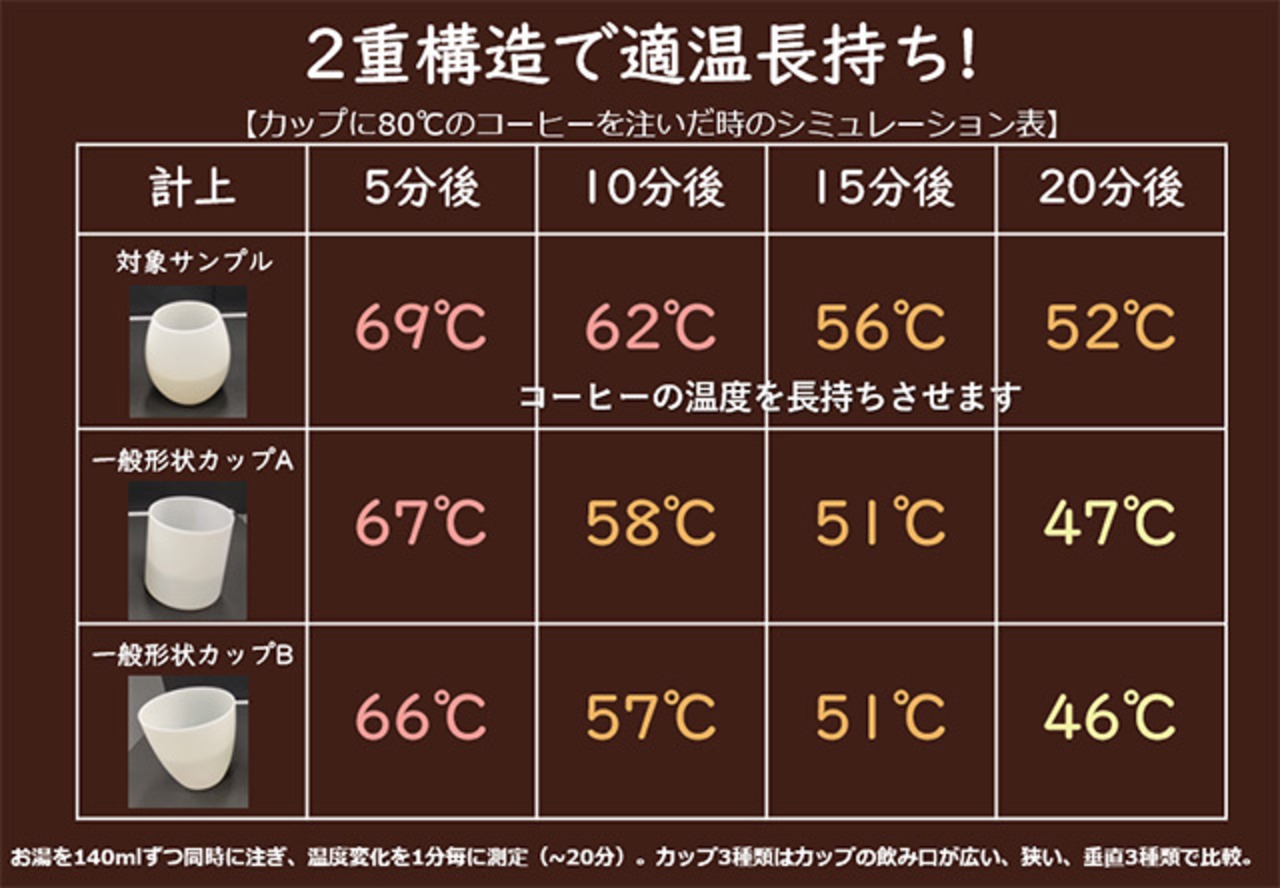 「コーヒーの香りがひきたつカップ」の形状を追求しました。